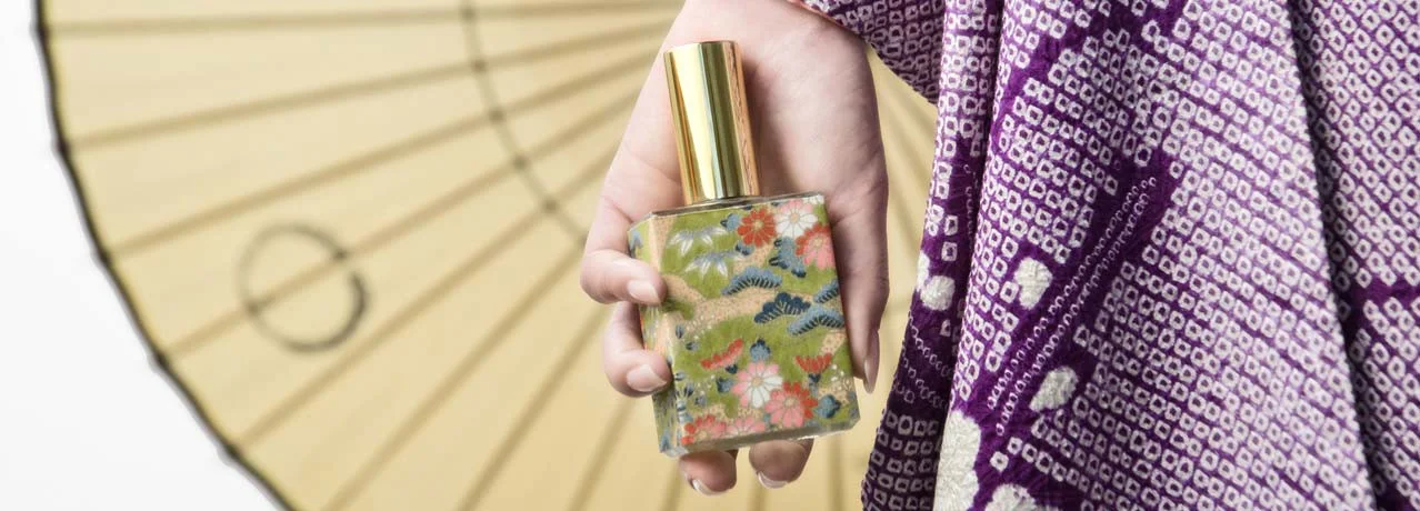 Japan and the Geisha most definitely are aroma M brand themes. The Yuzen papers from Kyoto that adorn our bottles are also a recognizable theme. In addition, I always include notes that reflect Japan in each Geisha perfume. Like Lychee in Geisha Blanche and Camellia, the namesake of my Camellia Perfume, have become aroma M signatures.