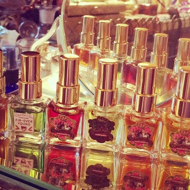 I get an idea, or I want to make perfume around some new gorgeous material that I have. It usually takes around six months to perfect it. But it really depends. I made my Black Cat perfume in about 10 minutes! I was in my Purrfumery before Halloween and I knew I had to make a Black Cat perfume. I was thinking of candy and vanilla and then I added cocoa, blood orange, aniseed myrtle for licorice, and ylang ylang. Fir-ever Young took me 10 years. That’s how long it took to tell me it was done! I used hundreds of woods, fir and cedars, not to mention floral scents and citrus—it was a work in progress for a very long time. I was thrilled when one of my customers was interviewed for Oprah Magazine and she mentioned that she wears it.