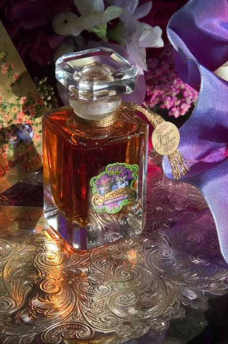 I don’t generally give advice because I think you have to know for yourself what makes your heart sing. I have always followed my heart, wherever that winding road has led me. I became passionate and obsessed about natural essences and there wasn’t a choice, I didn’t even think about it. I had capital from my lucrative wedding flower business, and once I knew I wanted to put my perfumes out into the world, I started thinking seriously about bottling them and creating treasure pouches to house them. I wanted every part to be as beautiful and magical as I could make it, so that each aspect is in itself a gift, from the perfume to the bottle or jewel-box, to the pouch or purse, and last, but not least, the Victorian-style scent card that accompanies each scent.